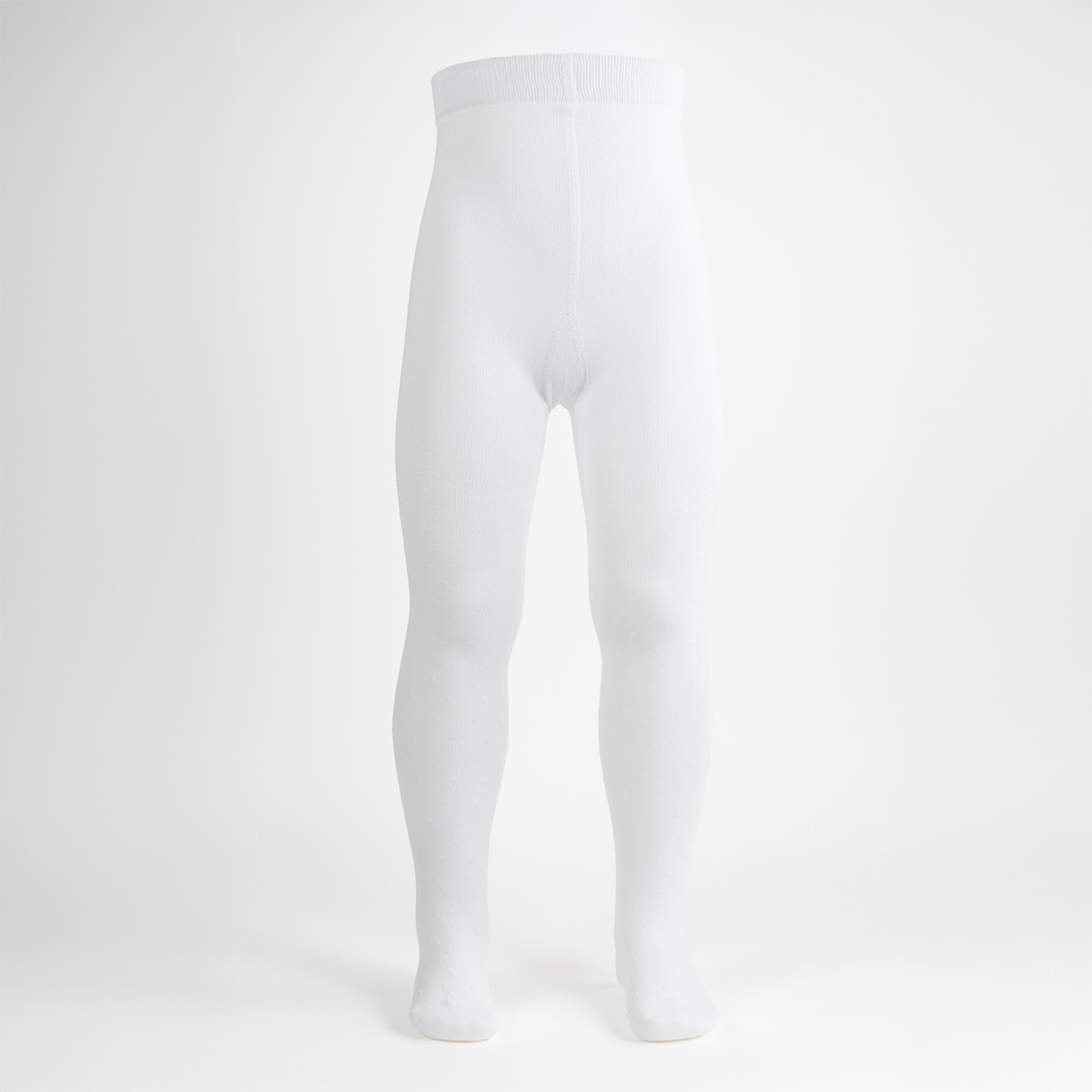 Glattstrikket bomullstrømpebukse med søte små prikker i bunnfargen som mønster. Strømpebuksen har forsterket hel og tå og bomullen føles myk og behagelig mot huden.